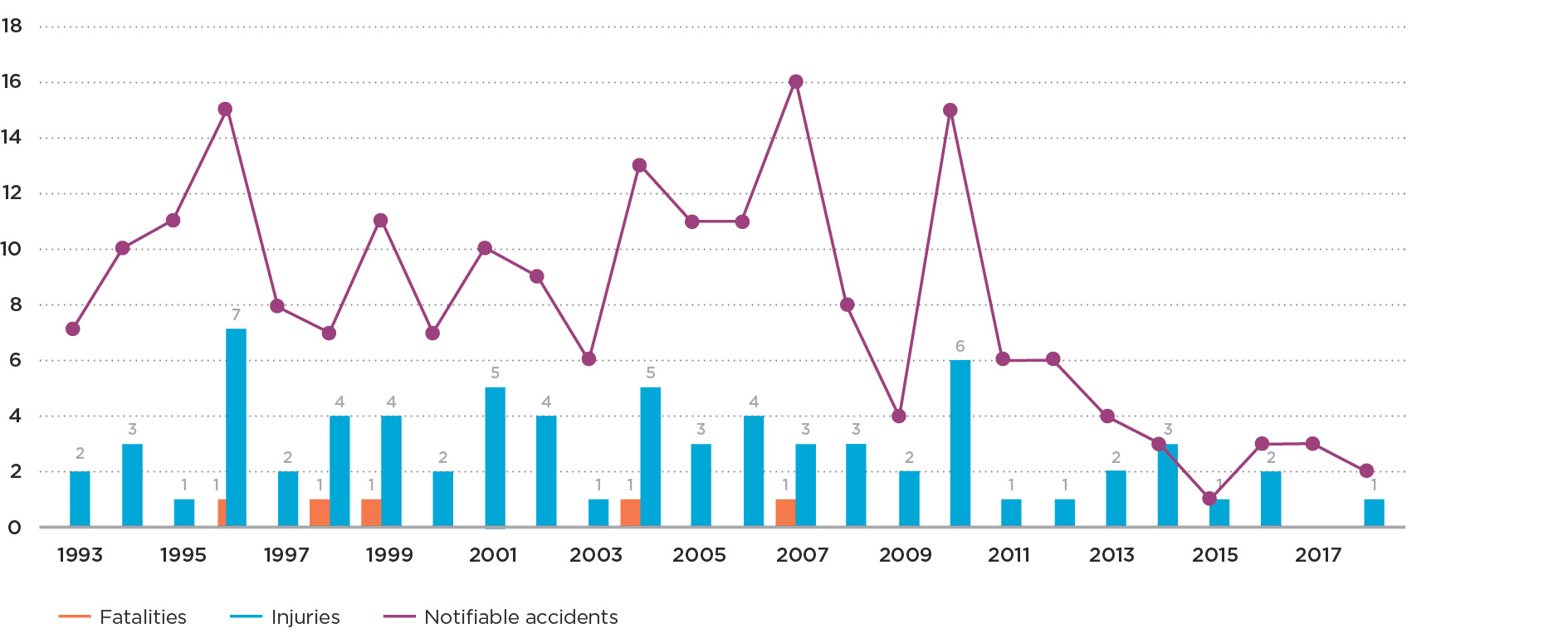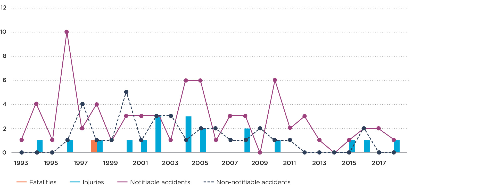 - In the past 26 years there have been 0.7 notifiable accidents and 3.5 non-notifiable accidents per year on average.