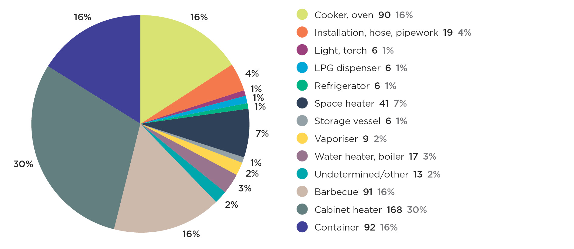 Of the 433 notifiable LPG accidents reported, 127 (29%) involved cookers or ovens. Out of the 127 notifiable accidents involving cookers and ovens, 92 resulted in 17 fatalities and injury to 124 people.