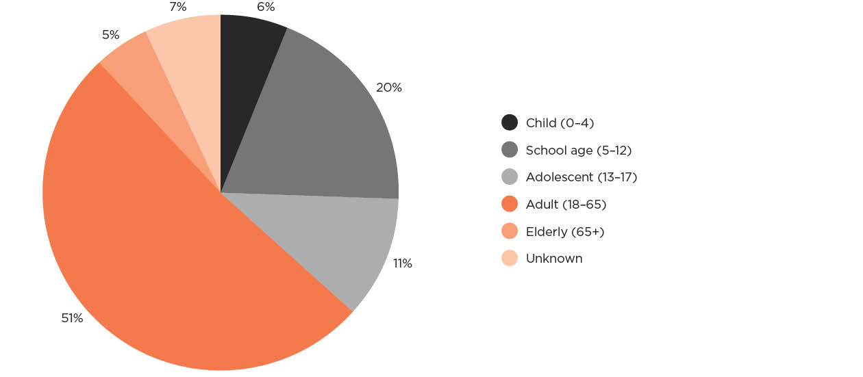 • One hundred and thirteen (37%) of the total 306 victims are young people (under 17), see Figure 1b.